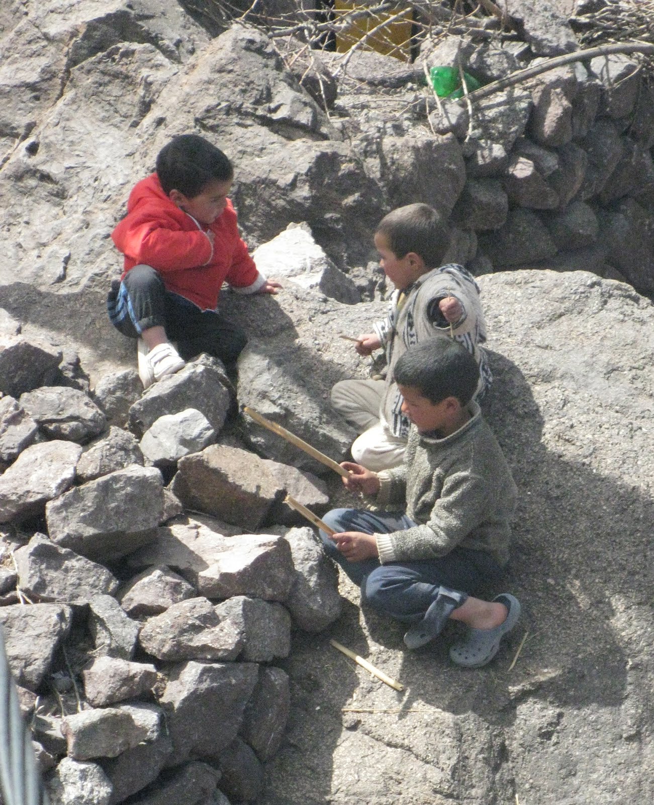 I could not resist taking this picture of three future musicians practicing on the rocks!